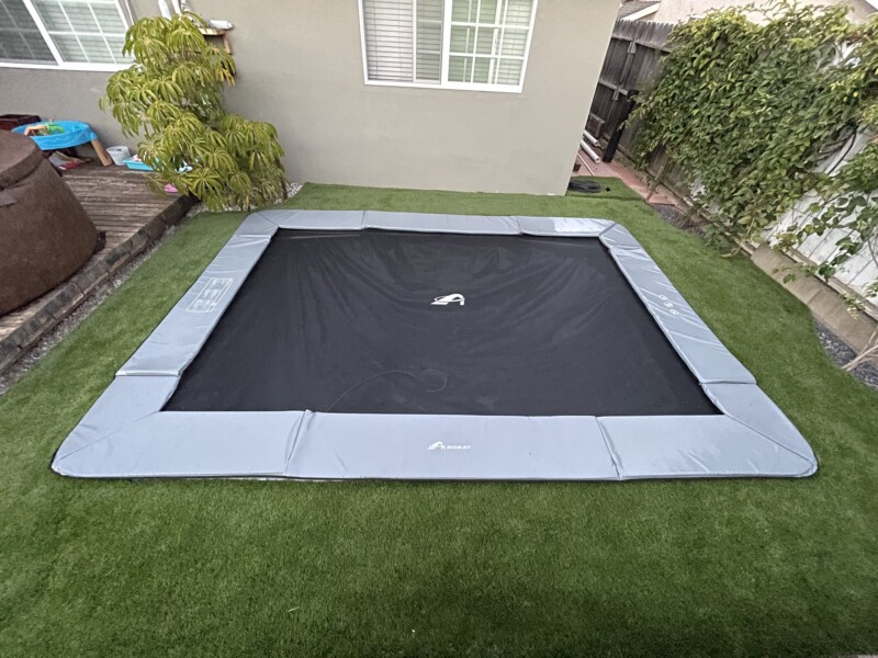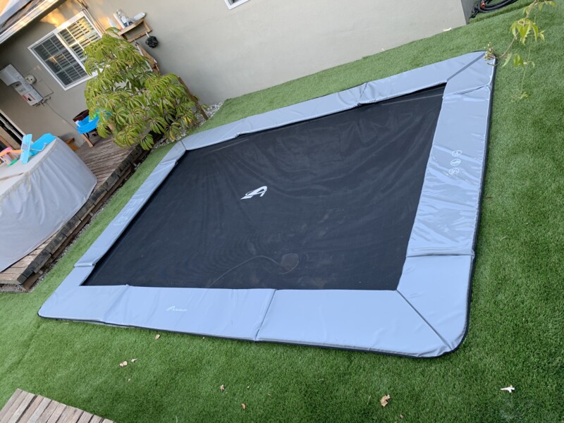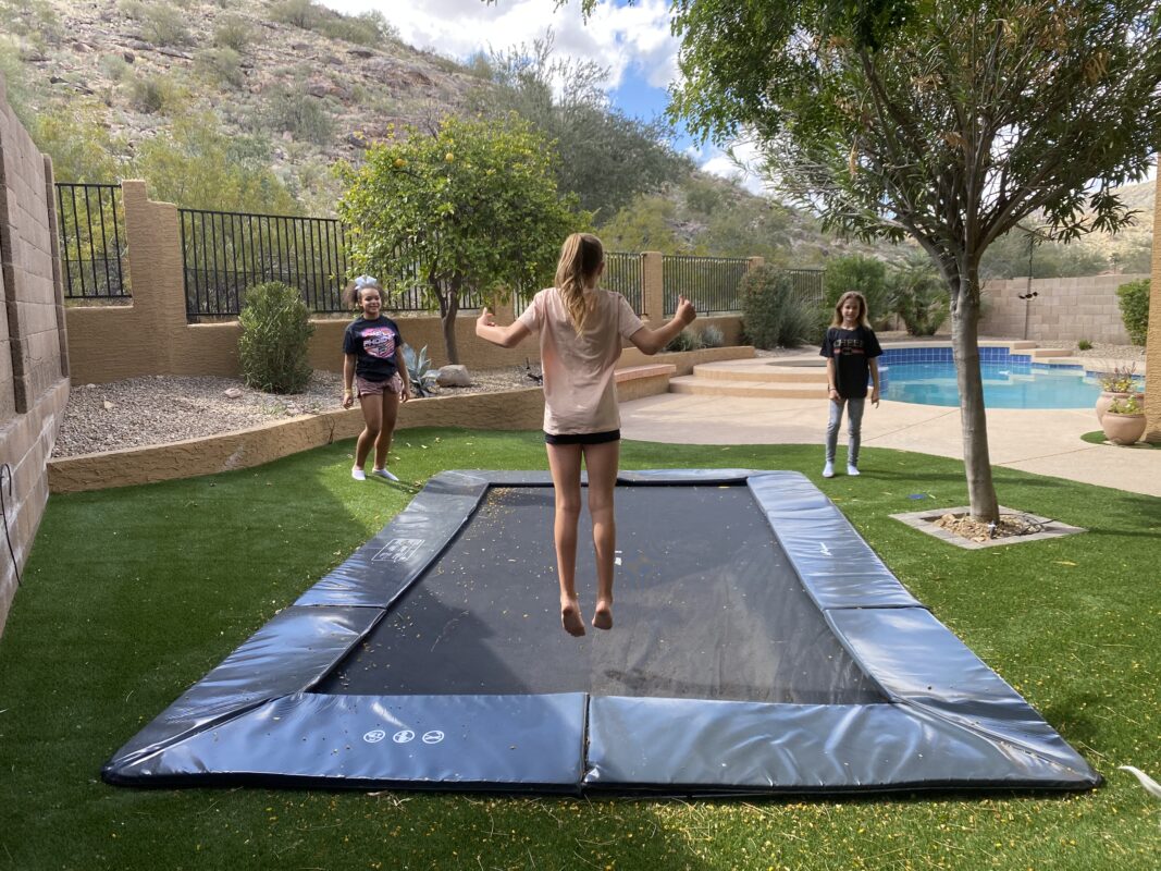 We purchased an 14×10 in-ground trampoline for our son’s 7th birthday. We are so glad that we did. He jumps on it almost every day, by himself, with us, or with his friends. We can see his physicality and strength improve every week…ours too. We can’t wait to see him continue to grow with it and develop his skills even futher.