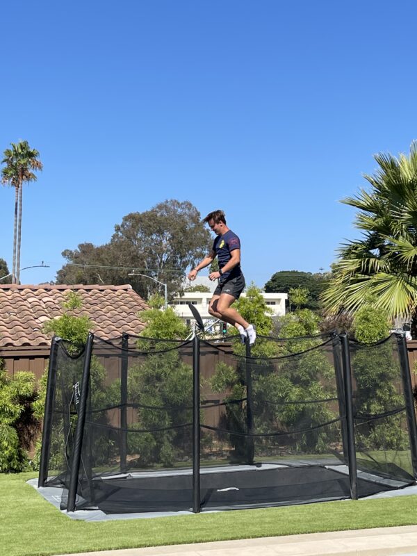 This trampoline is awesome! There is no comparison between this trampoline and a conventional store-bought trampoline. It’s got BBBOOUNNNCCEEE and it’s quiet. Where it sits in our yard just draws people to it. Everyone that walks past it hits at least a couple bounces and tricks on it before passing. Akrobat delivered super quick and was great to work with.